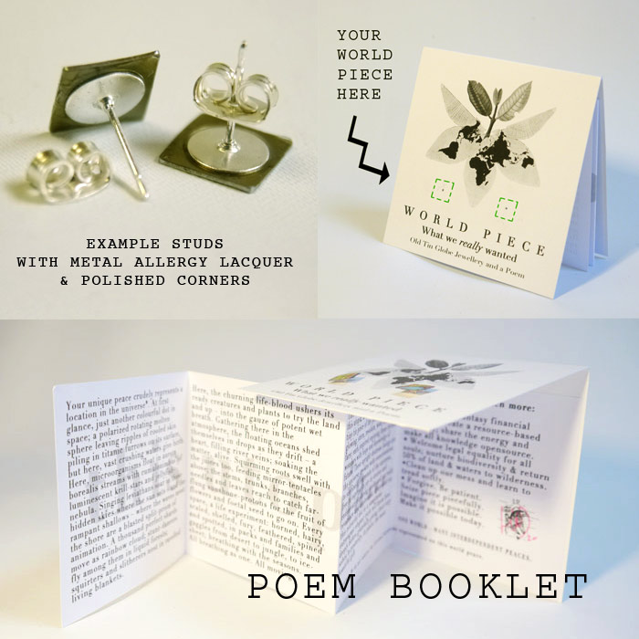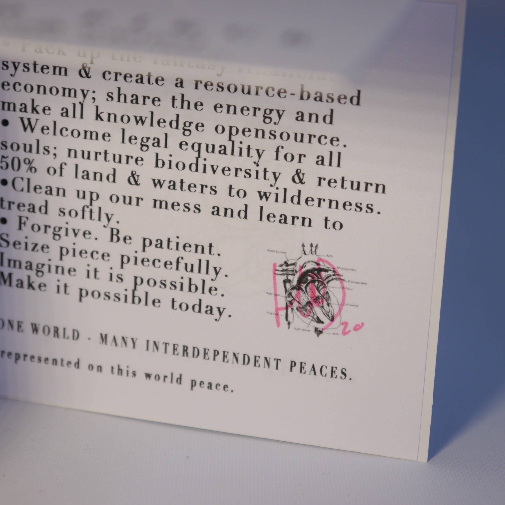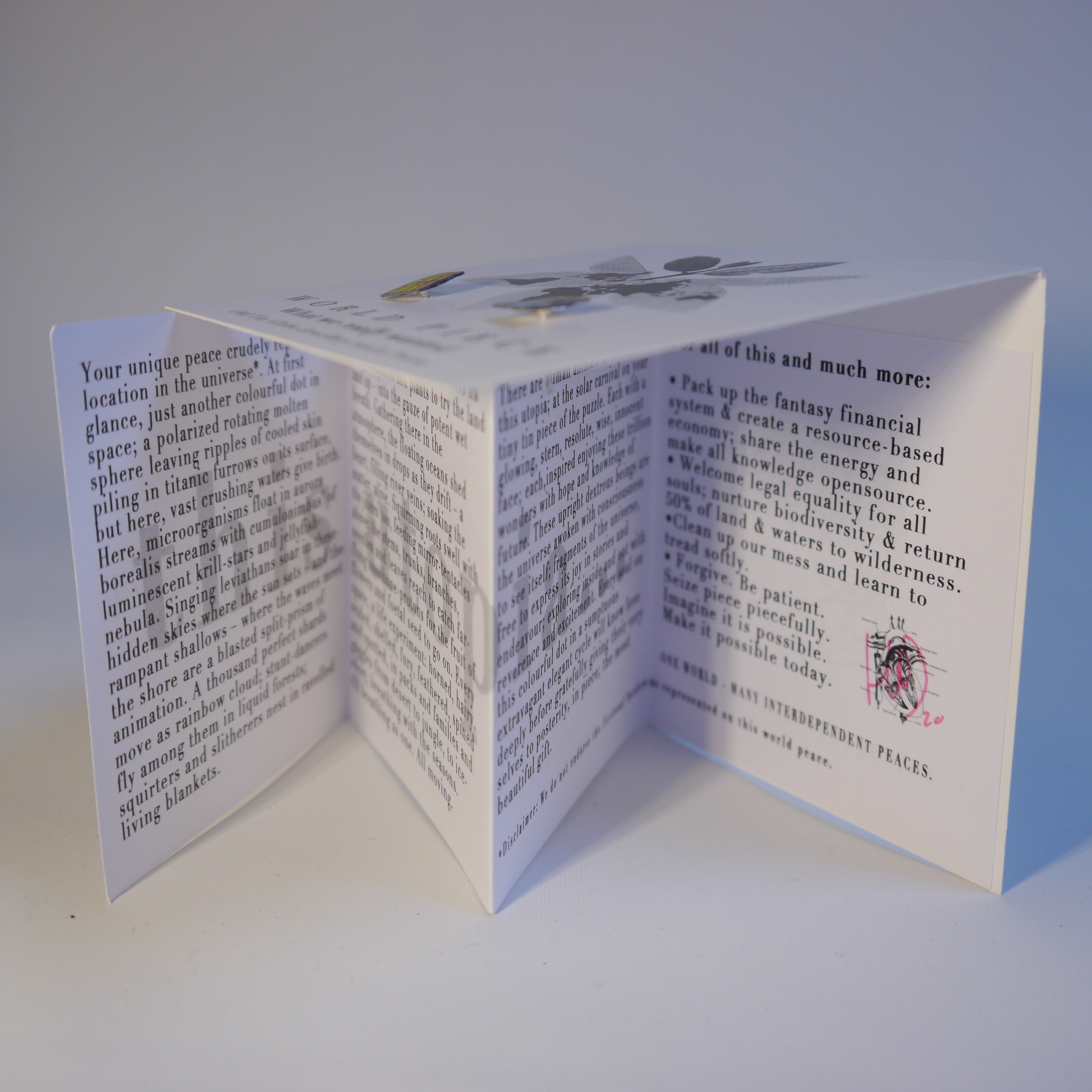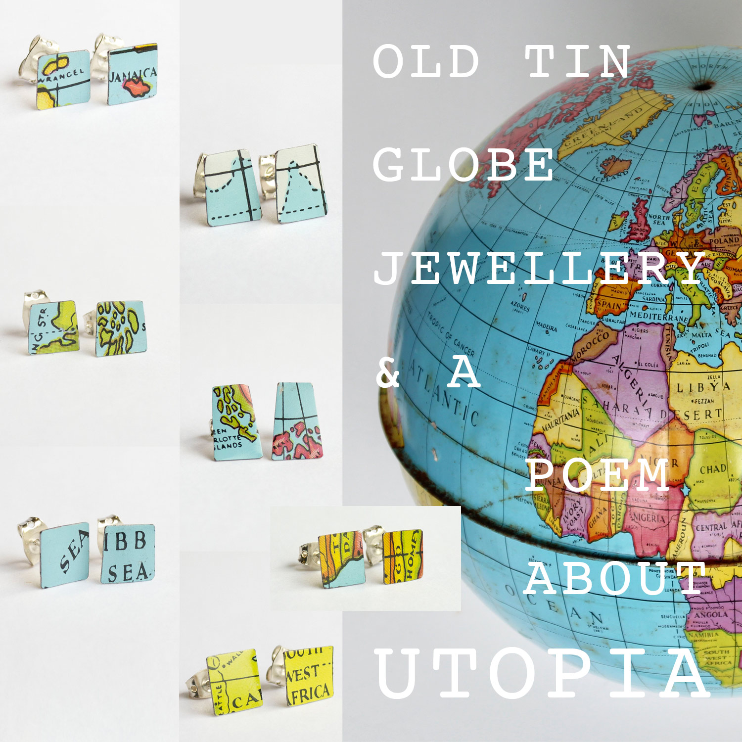 Hand made from an old tin globe (1976), mounted on a booklet with a poem about utopia that you can read here, and signed by the artist (who was also made in 1976).